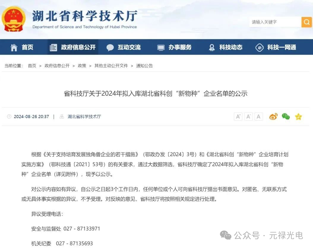 2024年8月14日,武漢東湖新技術(shù)開發(fā)區(qū)管理委員會發(fā)布了《武漢東湖新技術(shù)開發(fā)區(qū)管理委員會關(guān)于印發(fā) 2024年度“光谷瞪羚”企業(yè)名單的通知》,元祿光電憑借高速成長潛力和自主創(chuàng)新能力,成功入選2024年度“光谷瞪羚”企業(yè)榮譽稱號!