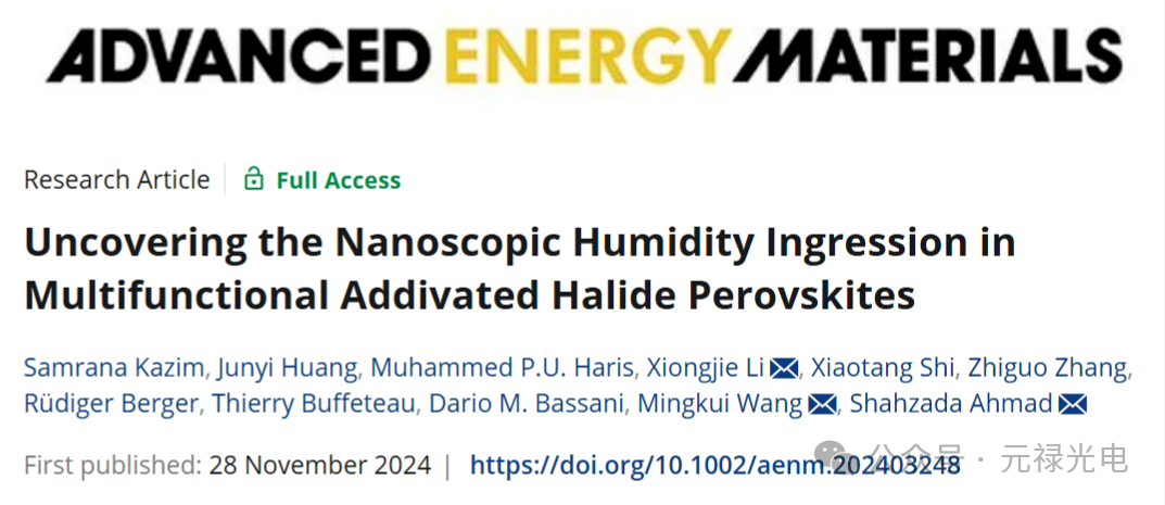 來自西班牙巴斯克材料應用中心(BCMaterials)Samrana Kazim & Shahzada Ahmad,以及來自華中科技大學王鳴魁教授 & 李雄杰團隊研究了含硫多功能添加劑對提高鈣鈦礦太陽能電池效率和濕度穩(wěn)定性的影響。