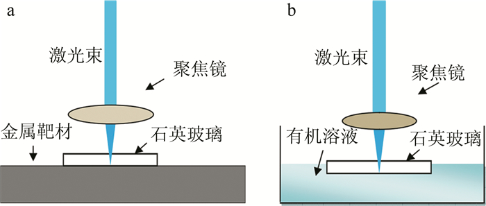 如圖 2所示,激光誘導(dǎo)等離子體刻蝕和激光背部濕法刻蝕的實(shí)質(zhì)都是利用激光透過玻璃后與靶材互相作用,產(chǎn)生等離子體來實(shí)現(xiàn)石英的刻蝕,從而克服玻璃無法直接吸收激光脈沖的缺陷,在玻璃的底面實(shí)現(xiàn)材料去除。兩者的主要區(qū)別在于激光誘導(dǎo)等離子刻蝕的靶材主要為不銹鋼、銅等金屬材料,而激光背部濕法刻蝕則常用甲苯、丙酮等有機(jī)溶劑作為激光吸收介質(zhì)。